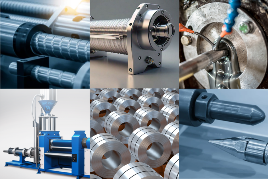 MOXIH® no solo fabrica máquinas, husillos y barriles, sino que también ofrece una amplia gama de repuestos y partes personalizables para satisfacer las necesidades específicas de cada cliente. Los husillos MOXIH®, disponibles en diámetros desde 60 mm hasta 255 mm, en las referencias 'KWP' para polímeros y 'KWR' para caucho, están diseñados con recubrimientos endurecidos para soportar el desgaste en aplicaciones de alto impacto.